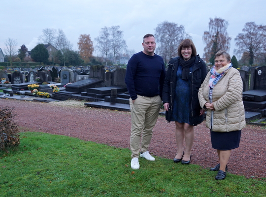 Veerle Seré : “We kiezen er dus voor om de rustplaatsen van onze dierbaren om te vormen tot waardevolle groene ruimtes die deel uitmaken van een groen-blauw netwerk in onze gemeente.”