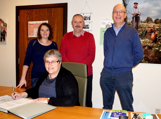 Schepen Marleen De Kegel, gemeenteraadsleden Gust Crabbe en Kim Paesmans en OCMW-raadslid Eddy De Cock: “Taal verbindt ons allemaal.”