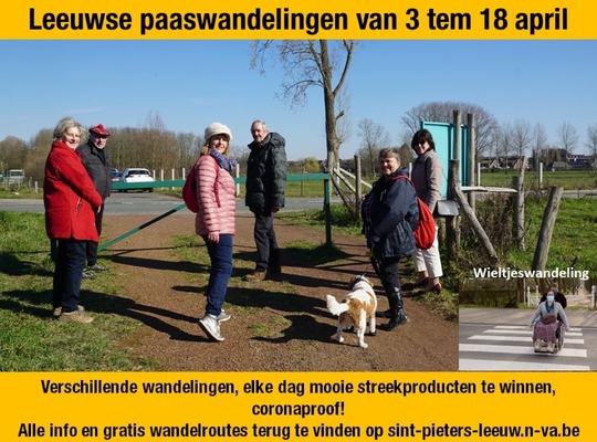 Verschillende wandelingen langsheen mooie Leeuwse plekjes om even corona te vergeten en de natuur in onze gemeente op te zoeken. En ook voor de minder mobiele mensen onder ons voorzien we een wieltjeswandeling.